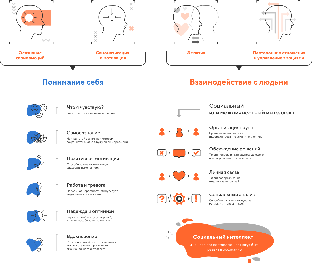Эмоциональный интеллект — это умение распознавать свои и чужие эмоции и управлять ими.